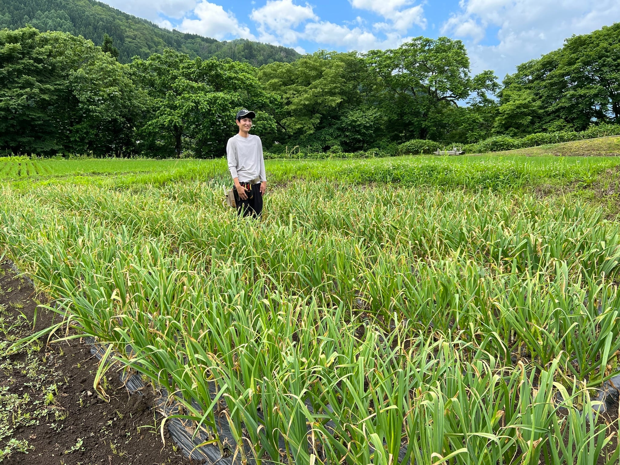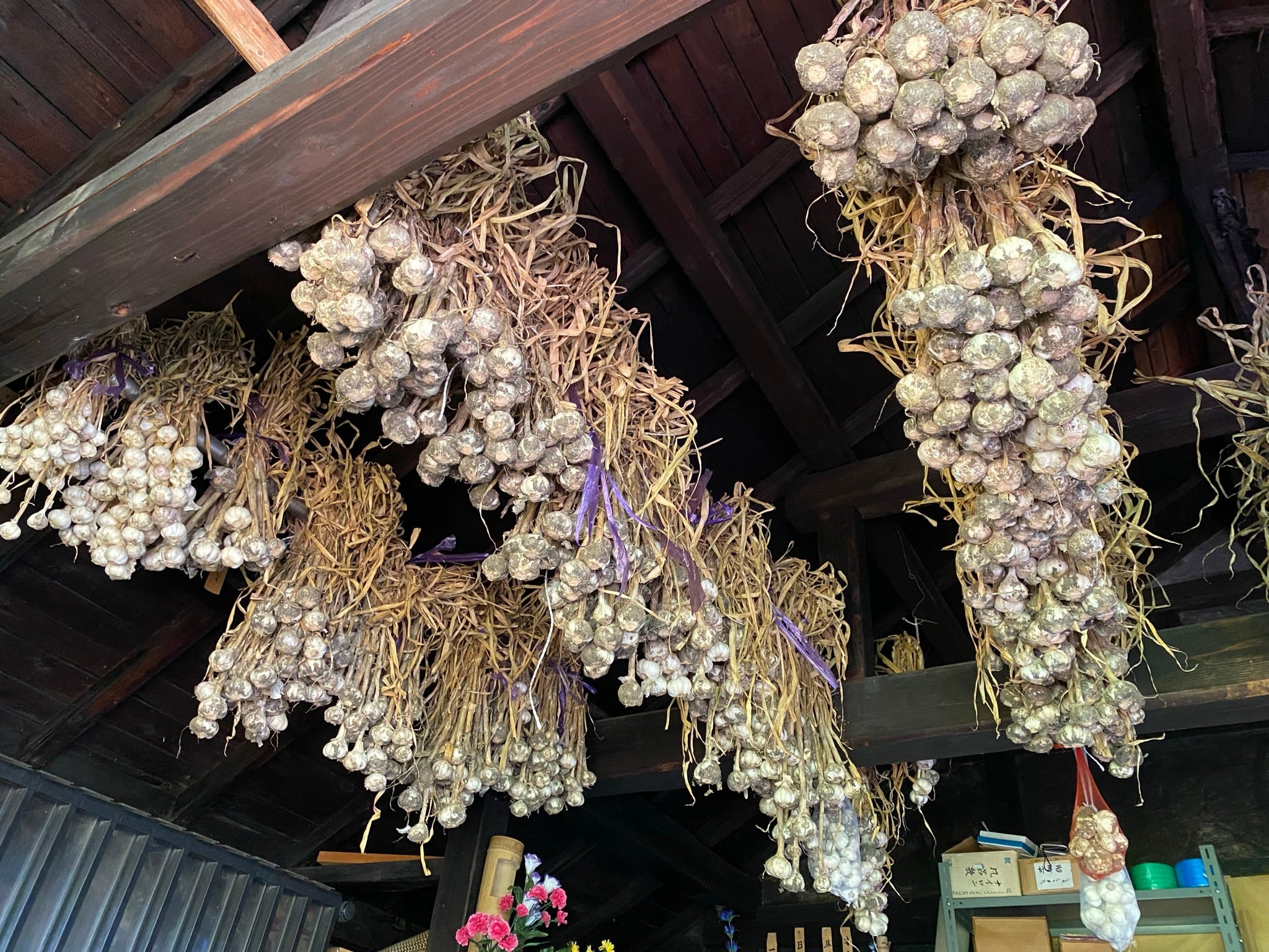 山形県西川町にある「本坊ファーム」でニンニクの収獲体験を行います。